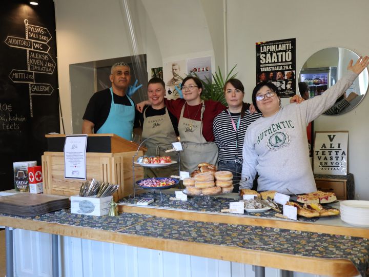 Kahvila tarjoaa tuoreita leivonnaisia, keittolounaita ja taidenäyttelyitä. Kahvila järjestää myös työllistymismahdollisuuksia.