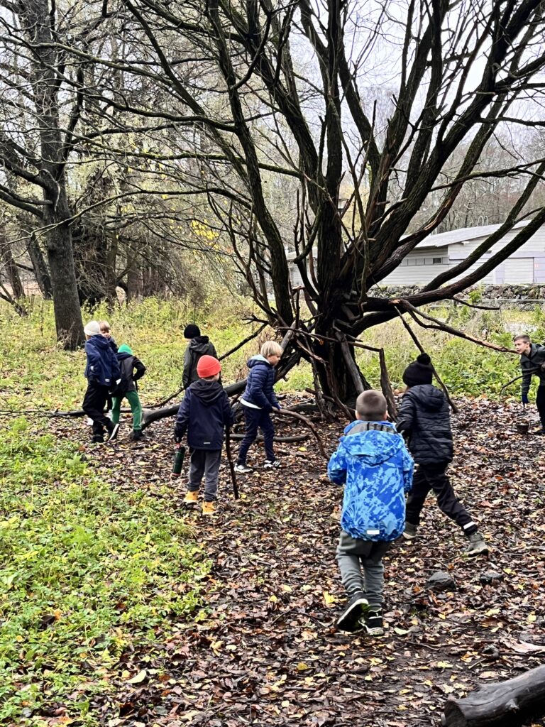 Vanhat puut herättävät lasten mielikuvituksen. Eri ikäiset ja muotoiset puut tarjosivat paikan sekä turvaan että seikkailuun ja tilaa omaehtoisen leikin syntymiseen. Puiden moni-ilmeiset rungot, kolot ja oksat tukivat sensomotorisia taitoja, mutta yhtä lailla tarinallista ja leikkimielistä ajattelua. Tehtävä, missä piti miettiä puiston eläinasukkaille sopivia talvipesiä, oli erityisen mieluisa ja sai lapset eläytymään esimerkiksi hiiriksi, oraviksi, linnuiksi ja jäniksiksi.