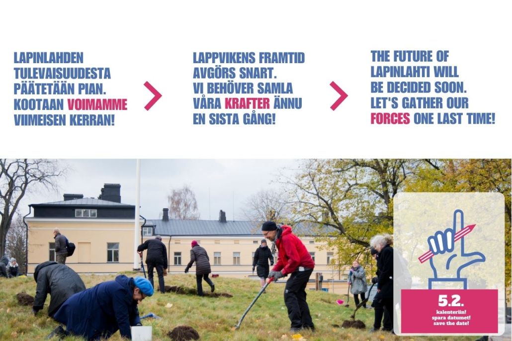 Our campaign this spring will be extremely important. The last effort for Lapinlahti’s future begins! More information is coming next week, but share, like, subscribe to the newsletter and invite your friends too: https://urly.fi/3q4e — Lisätietoa: https://lapinlahdenlahde.fi/ IG: @kaikkienlapinlahtilapinlahdenlahde Facebook: lapinlahdenlahde Tiktok: lapinlahdenlahde