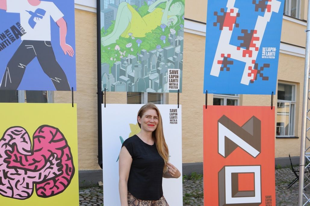 Tapaamme Jutta Kivilompolon kanssa Kahvila Lähteen aurinkoisella terassilla. Hän odottelee jo minua kylmä juoma pöydällään. Jutan takana on valtava metalliteline, jossa on Save Lapinlahti with a Poster -julistekilpailun tuomariston valitsemat 24 teosta. Siellä on myös Jutan upea teos, jossa nainen makaa vehreässä puistossa hautausmaan ja Ruoholahden kerrostalojen välissä. Se sai kakkossijan tässä kansainvälistä kiinnostusta herättäneessä kilpailussa Lapinlahden pelastamisen hyväksi.