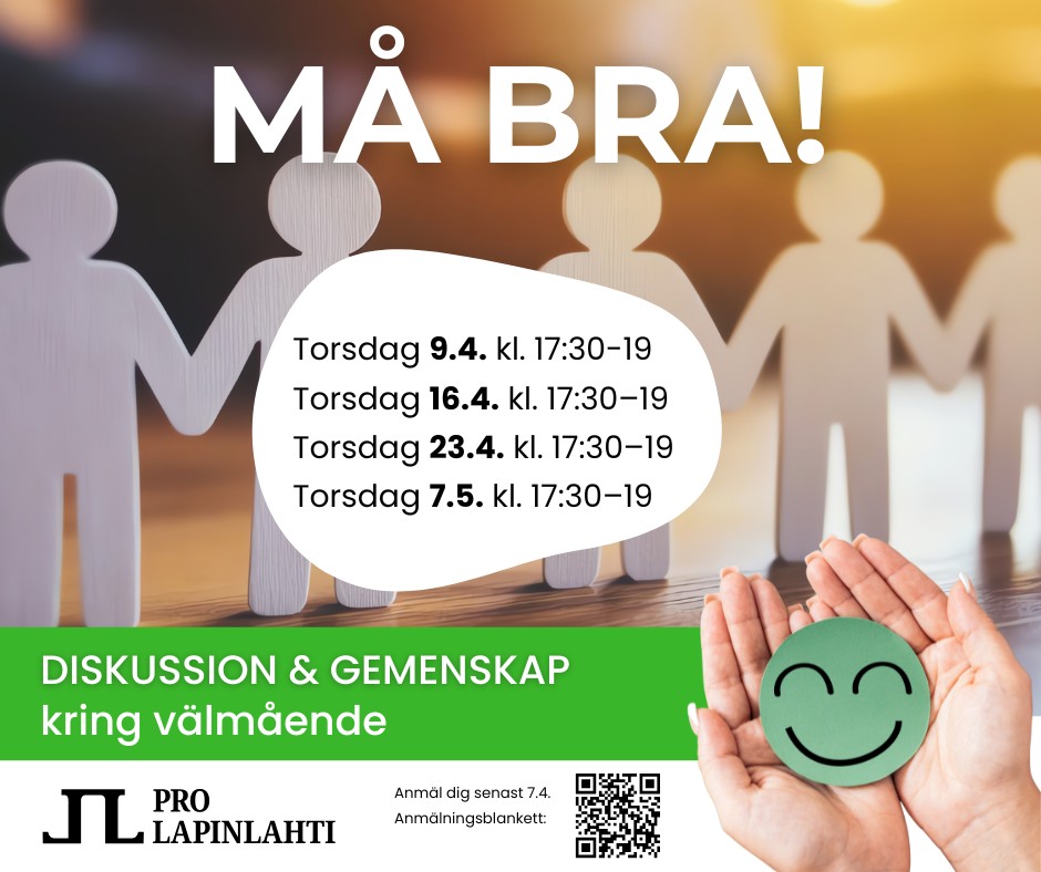 Pris? Det är gratis att delta i gruppen och alla deltagare får en egen Må bra- arbetsbok.