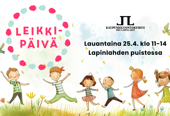 Leikki tekee hyvää kaikille ja monella tavalla, etenkin kun se tapahtuu ulkona luonnon helmassa. 25.4. on valtakunnallinen Leikkipäivä. Tervetuloa Lapinlahden puistoon leikkimään ikään katsomatta! Klo 11-14 paikalla antamassa leikkivinkkejä Lasten Luontolähde -hankkeesta lapsen luontosuhteen asiantuntija, projektipäällikkö Taina Laaksoharju.