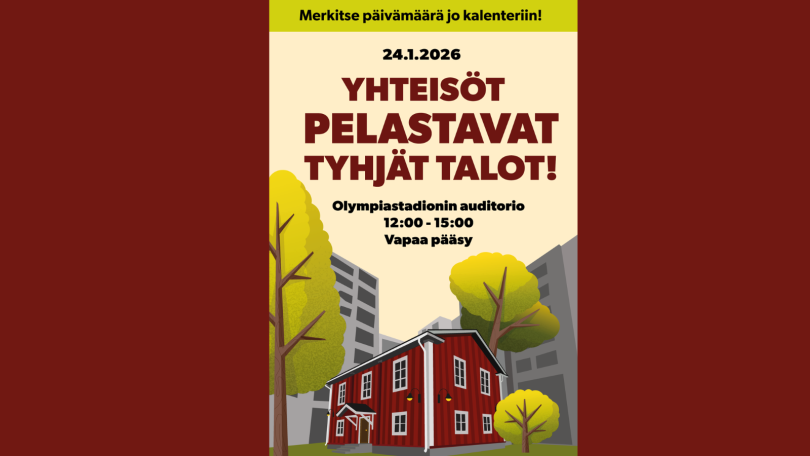 SAVE THE DATE – Olympiastadionin auditoriossa järjestetään lauantaina 24.1.2026 kello 12–15 seminaari siitä, miten Helsingin kaupungin omistamat tyhjät talot saadaan pelastettua ja asukkaiden yhteisöjen käyttöön.