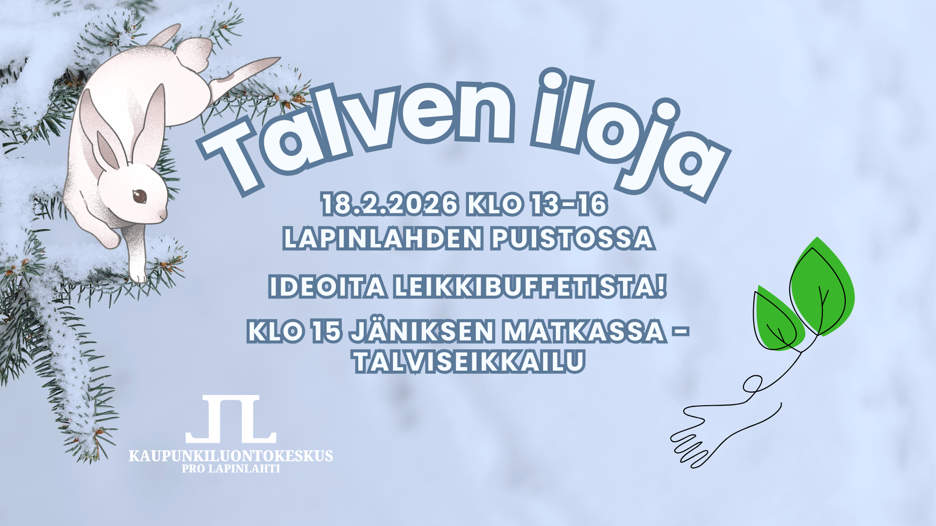 Kaupunkiluontokeskus kutsuu hyppäämään arkijäniksen selästä. Tule nauttimaan talven iloista Lapinlahden puistoon.