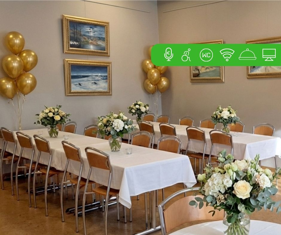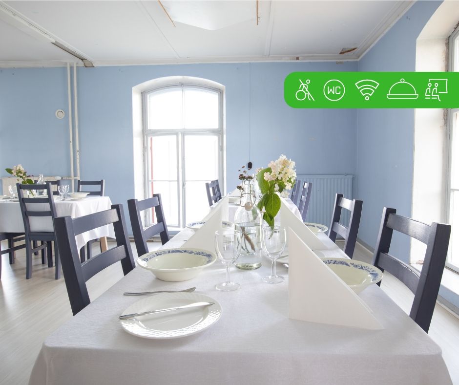 Sininen huone on tunnelmallinen ja valoisa kokous- ja juhlatila merellisen Venetsia-talon toisessa kerroksessa. Isoista ikkunoista avautuu huikaiseva merinäköala ja tässä hyvin erityisessä tilassa pääset todella irtautumaan arjesta ja kaupungin kiireestä. Tila sopii kokousten, kurssien, työpajojen, joogan tai pienten juhlien järjestämiseen enintään 20 hengelle. Tilassa on kalustuksena kaksi pöytää, tuolit 13 hengelle sekä sohvaryhmä. Tilassa on […]
