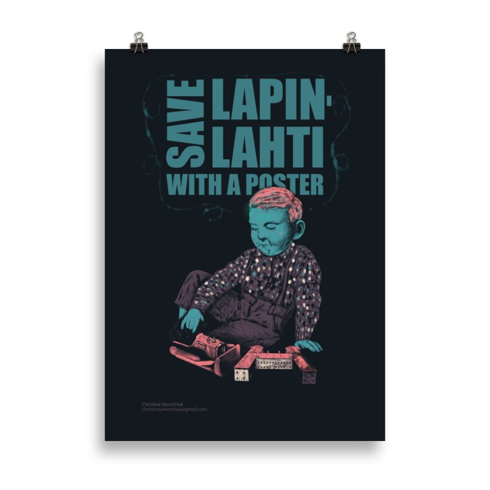 50 x 70 cm museum-quality poster, thoughtfully designed by Hilppa Hyrkkäs for the Save Lapinlahti with a Poster 2023 competition.
